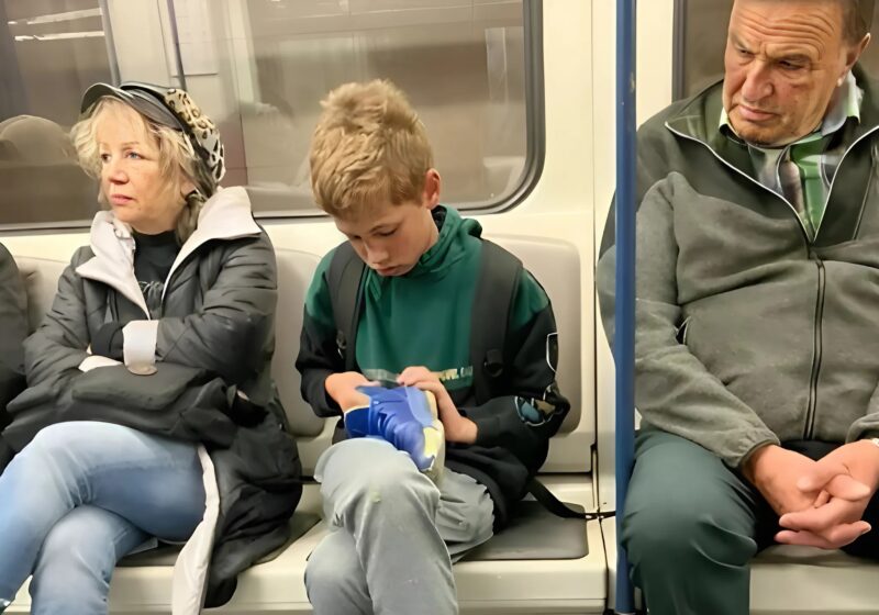 На наступній зупинці двері відчинилися, і до вагону зайшов хлопчик років десяти. Він виглядав так, ніби втік із уроків — скуйовджене волосся, зім’яті шорти, у руці — зношений кросівок. Але головне — він був босий. На одній нозі — тоненька смугаста шкарпетка. Він сів на вільне місце між двома пасажирами й намагався не привертати уваги.