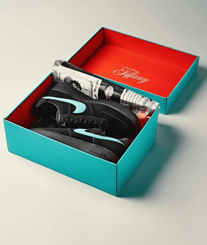 Він дістав із сумки коробку. Відкрив кришку. Усередині — новенькі сині кросівки з етикетками.