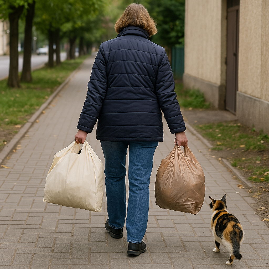 Я побачила її випадково, коли виходила з супермаркету з важкими пакетами в руках. Кішка сиділа неподалік входу — не біля самих дверей, де зазвичай сидять жебраки, а трохи осторонь, біля урни. Триколірна, худорлява, з білою грудкою. І одразу кинулось у вічі — у неї лише три лапи. Четверта, задня, була відсутня, явно вже давно.
