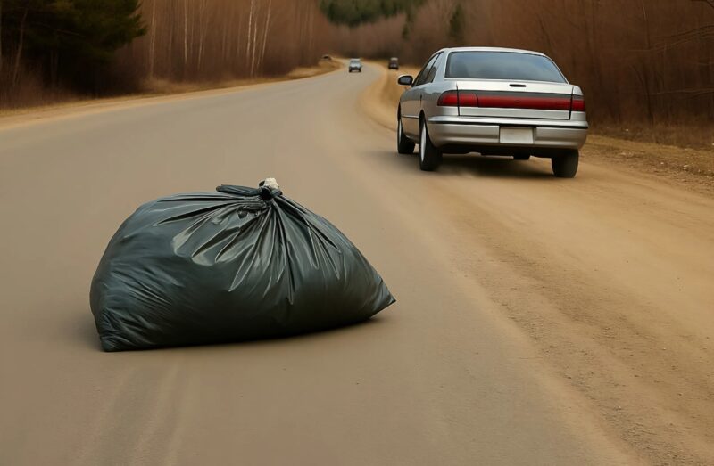 Водій їхав мовчки, тримаючись ближче до центру дороги. На пасажирському сидінні дрімав старий пес. 😱😱 Раптом, коли здавалося, що все йде як звичайно, попереду з’явилася машина. Дивна машина повільно рухалася вперед. У якийсь момент вона пригальмувала, задні дверцята трохи відчинилися — і чорний сміттєвий пакет викинули на узбіччя. Авто одразу ж пришвидшилось і зникло за поворотом.
