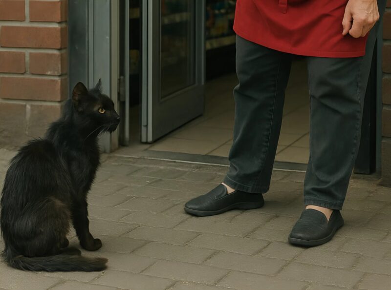 Це був звичайний вечір у маленькому продуктовому магазинчику на розі жвавої вулиці. Біля входу сиділа кішка — худа, з тьмяною шерстю, але з добрими очима, повними постійного неспокою.
