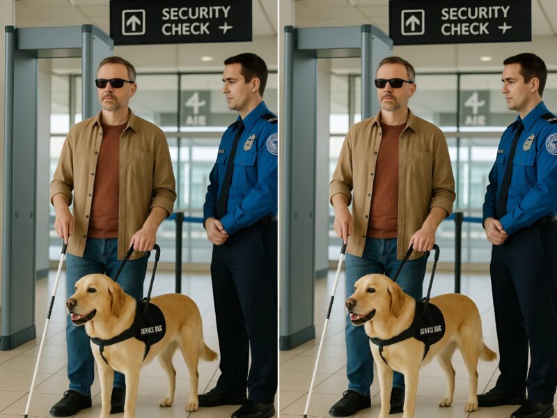 Того дня ми підійшли до контрольно-пропускного пункту. Я вже знав, що цей етап може бути напруженим — не всі працівники знають, як правильно поводитися з собаками-поводирями. Один із співробітників служби безпеки аеропорту підійшов до нас, і те, що він зробив, залишило мене без слів.
