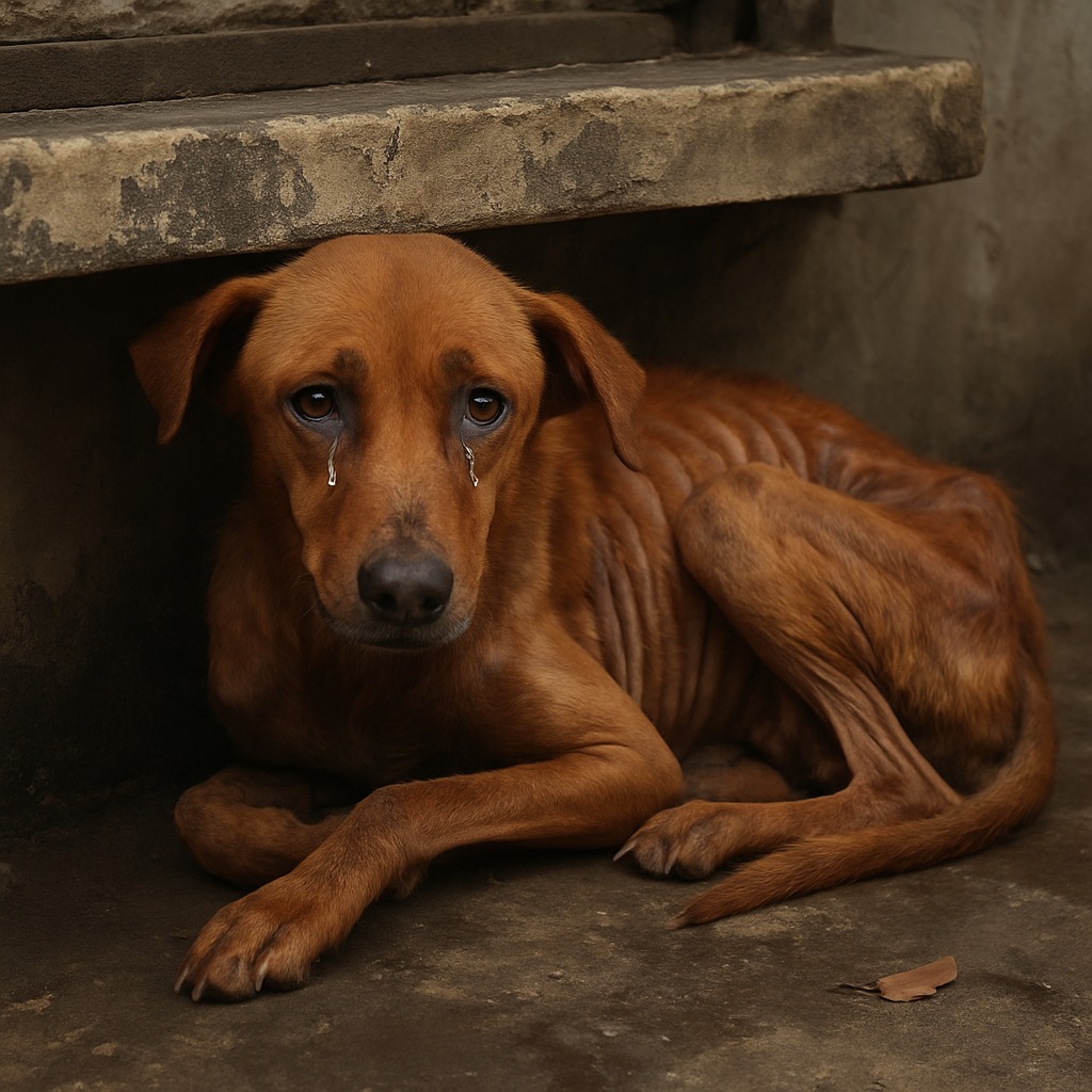 Собака зробив спробу встати. Чи не змогла. Тоді спробувала повзти, але навіть це було вище її сил. Вона просто заплакала, тихо дивлячись на людей, що кричать. Великі сльози котилися з її очей.