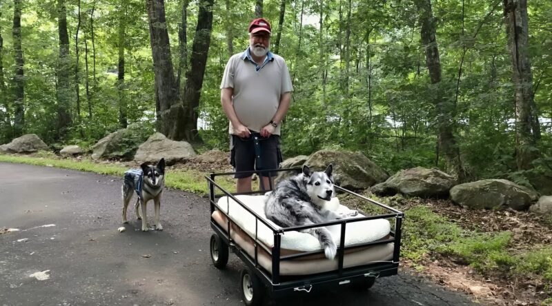 Старий чоловік з довгою білою бородою тягнув за собою невеликий візок. У ньому лежав старий пес — морда посивіла, тіло заклякле, майже нерухоме. Поруч мовчки ішов молодший собака.
