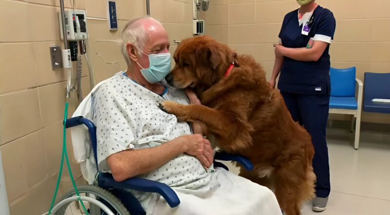 Кілька годин потому, серед звуків медичних апаратів, Мерфі приїхав — спокійний, лагідний, з хвостом, що радісно махав.