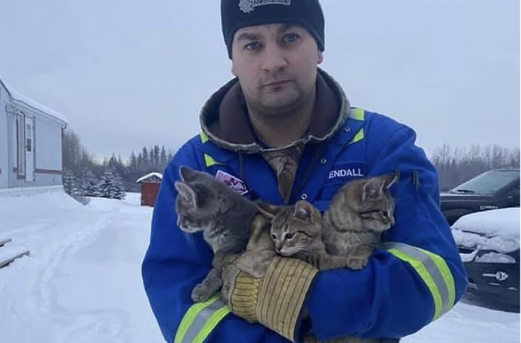 Чоловік побачив, що малюки ще дихають, і вирішив забрати їх у машину, щоб зігріти. Але підняти їх не вдавалося — шерсть міцно примерзла. І тоді Кендал згадав про чашку гарячої кави в машині. Напій допоміг розтопити лід, і невдовзі троє кошенят уже грілися в салоні авто.
