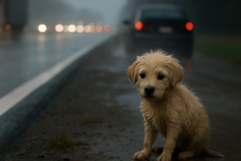 На краю траси, під нескінченним дрібним дощем, сиділо щеня. Зовсім малюк — наче хтось кинув мокру ганчірку